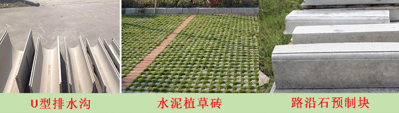 1、一机多用。更换模具可生产空心六棱块、路缘石、路侧石、电缆沟盖板、联锁护坡砖、植草砖、U型排水沟等上百种不同规格的小预制构件。