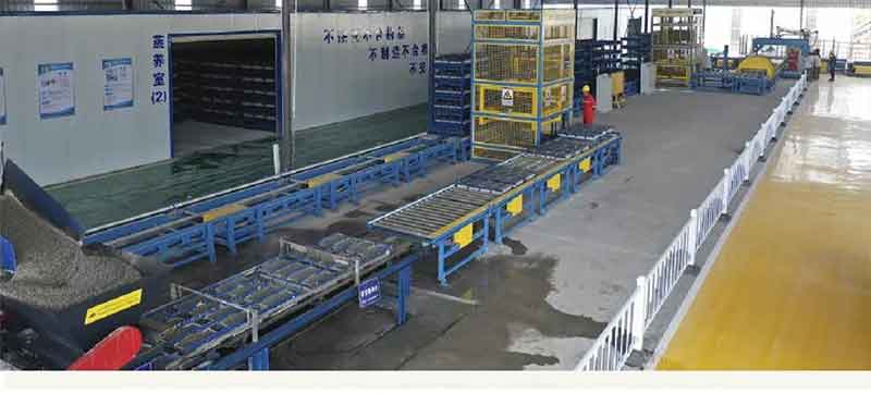 混凝土小预制件自动生产线,由混凝土滚装车上料,全自动生产各类小预制件,斜拉上料、平轨出料、振动成型、料盒辊推、叉车转晒,用于野外路桥、高速、高铁、隧道、机场等小预制的生产;国道、城市道路、小区等各类马路牙子、路沿石、边沟盖板等预制件的生产。如制作六角护坡,U型排水沟,边沟盖板,骨架挡水快,路测石,手孔井盖板,土路肩预制块,拱形骨架边坡防护,路堑检修踏步等各类预制工程高效率生产。